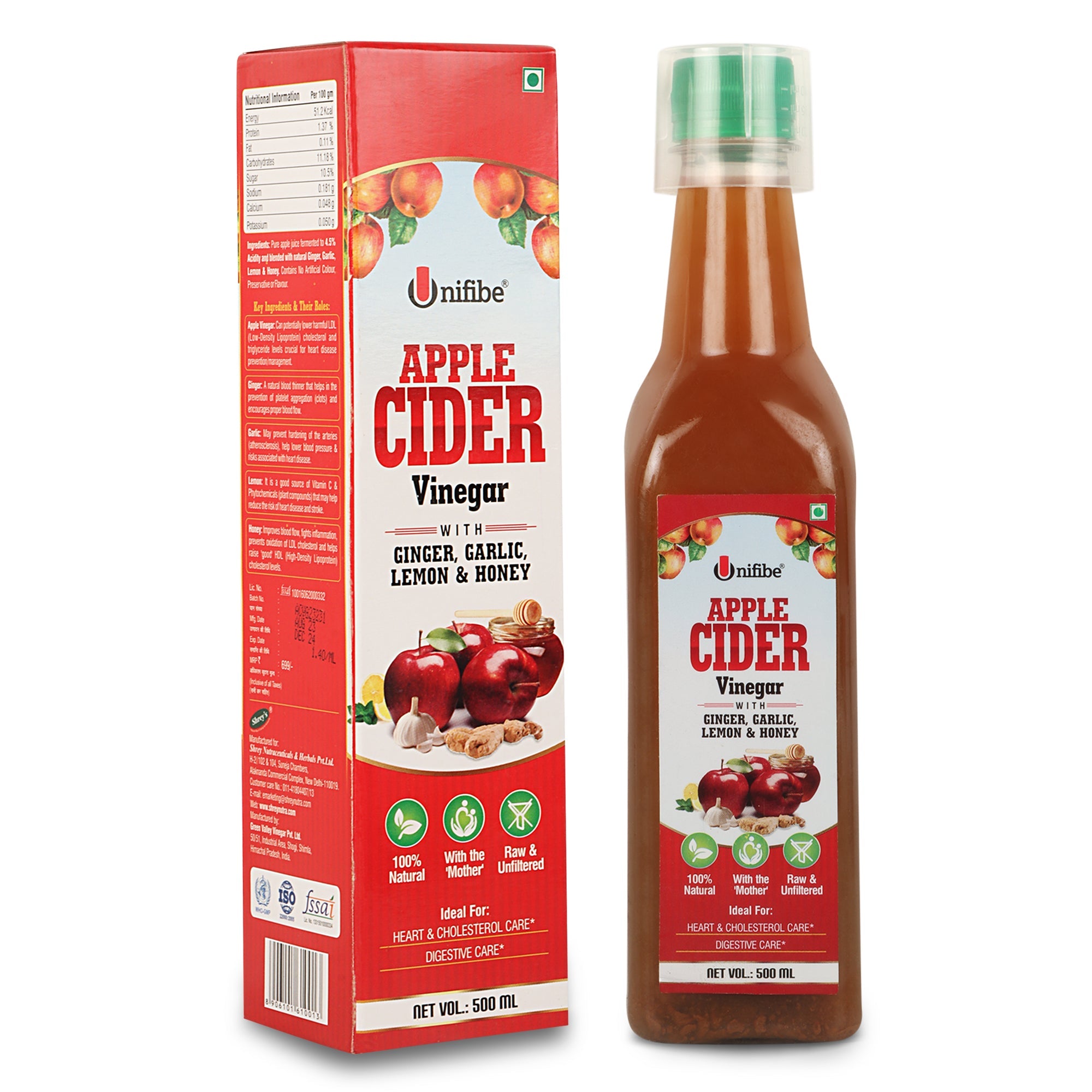 Unifibe® Apple Cider Vinegar with Ginger, Garlic, Lemon & Honey for Digestive Health, Immune Support, Heart Health, Weight Management & Boost Energy– 500 ml (Natural, Unfiltered & With The ‘Mother’)